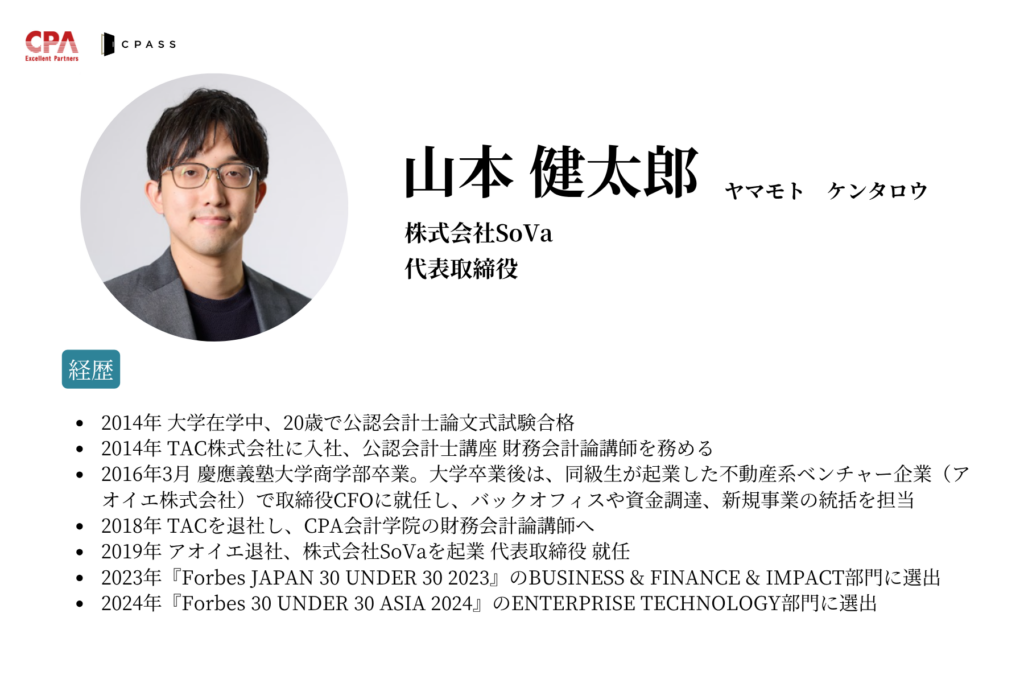 中小企業向けの「次世代型の会計事務所」を目指し「AI×専門家」「AI×士業」を軸とした会計事務所を運営する株式会社SoVa。代表の山本氏は、自社が目指す取り組みを「会計事務所のユニクロ」と表現し、次のように語ります。