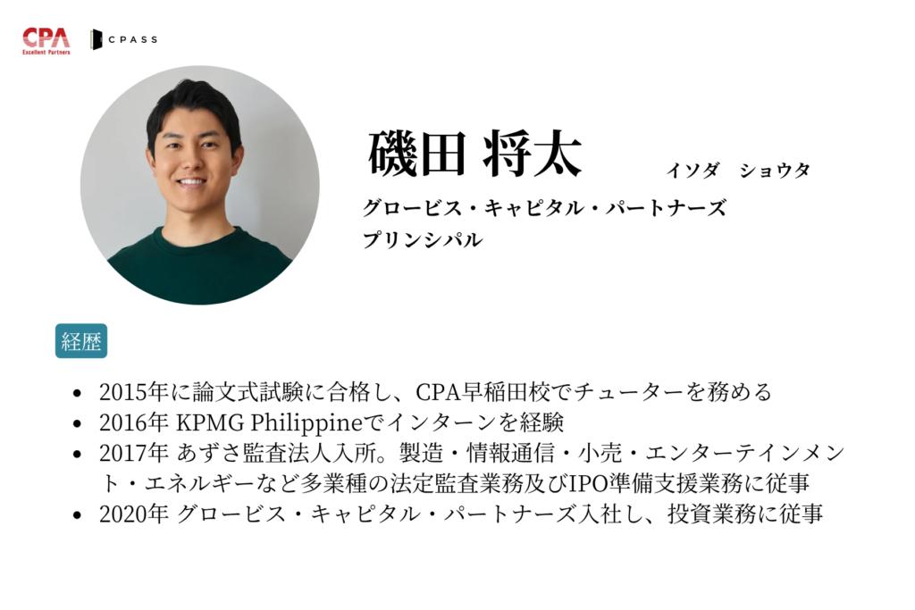 | 登壇者 | ゲスト:小澤 隆生(Boost Capital株式会社 代表取締役) ゲスト:山本 健太郎(株式会社SoVa 代表取締役) モデレーター:磯田 将太(グロービス・キャピタル・パートナーズ プリンシパル) |