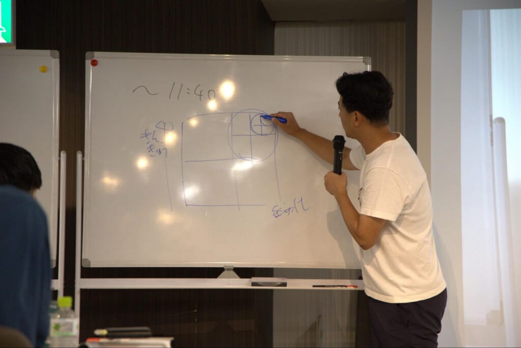 そのうえで、壮大なビジョンを日々の行動へ落とし込む実務ツールとして「マンダラシート」の活用が紹介されました。ビジョンから逆算して必要要素を分解し、日次・週次の具体行動に接続することで、思考と行動の一貫性を保ちながら進むことができます。