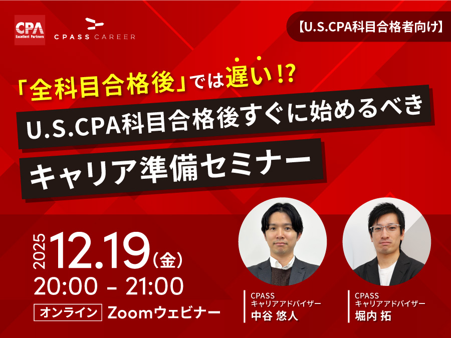 「全科目合格後」では遅い!? U.S.CPA科目合格後すぐに始めるべきキャリア準備セミナー