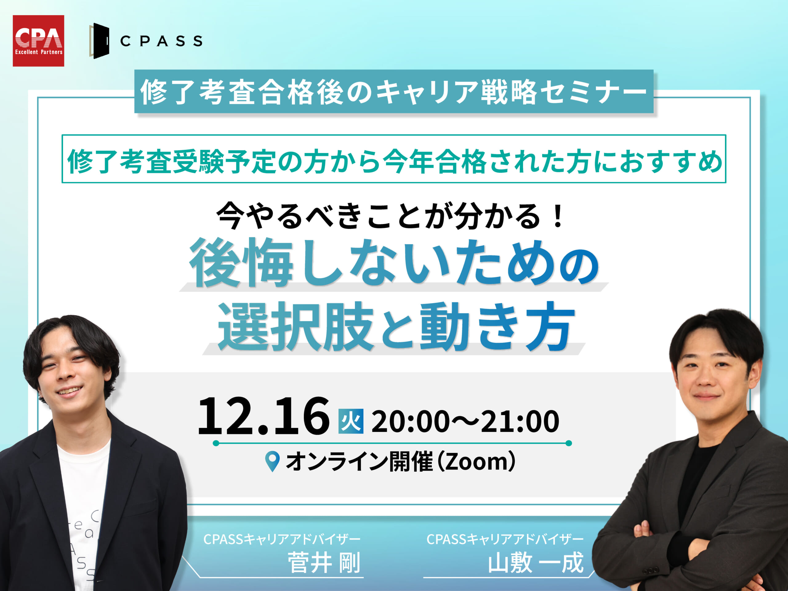 【修了考査合格後のキャリア戦略セミナー】今やるべきことがわかる!後悔しないための選択肢と動き方
