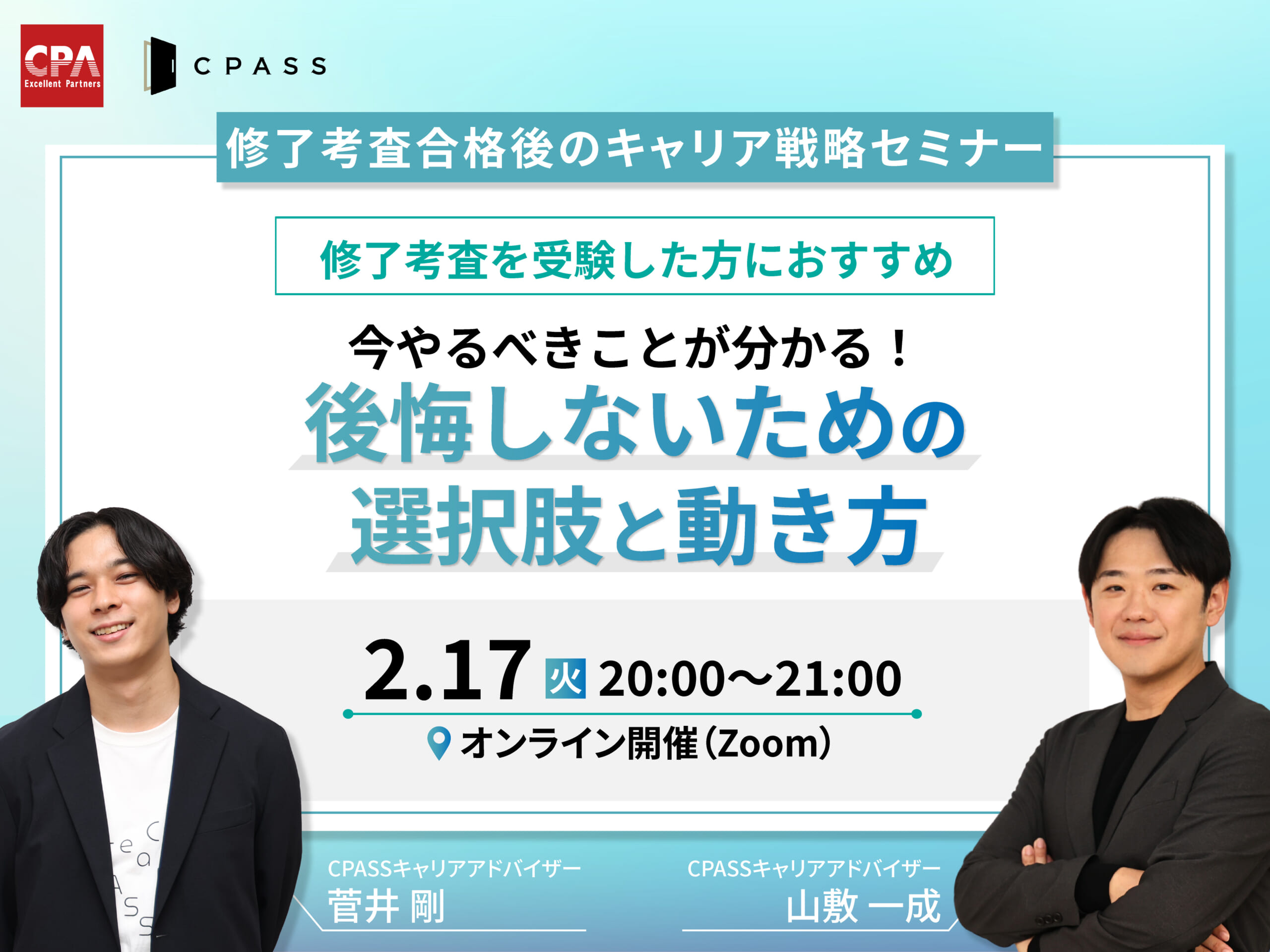 【修了考査合格後のキャリア戦略セミナー】今やるべきことがわかる!後悔しないための選択肢と動き方