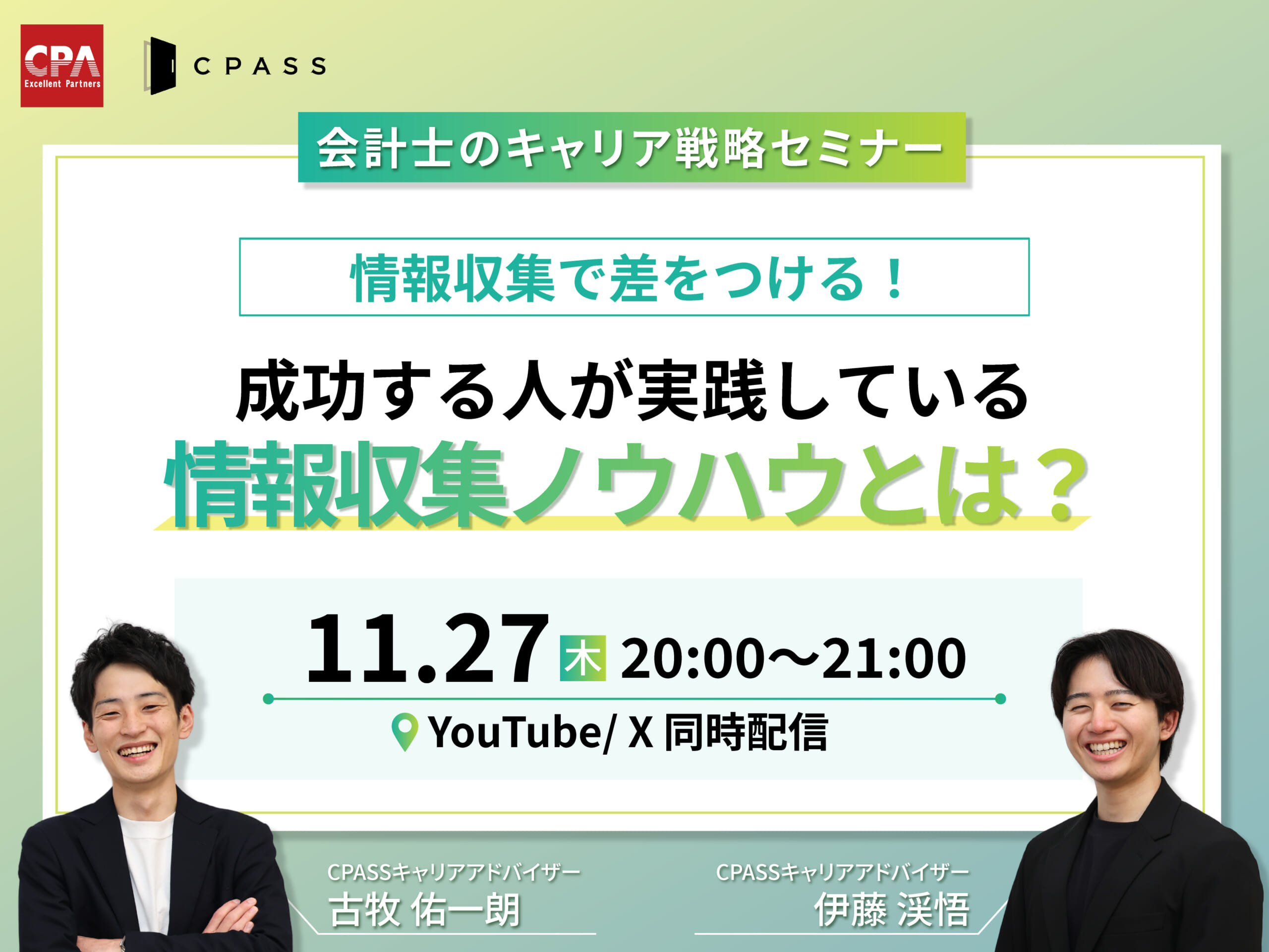 【会計士のキャリア戦略セミナー】情報収集で差をつける!成功する人が実践している情報収集ノウハウとは? 【YouTubeライブ・X同時配信】開催終了