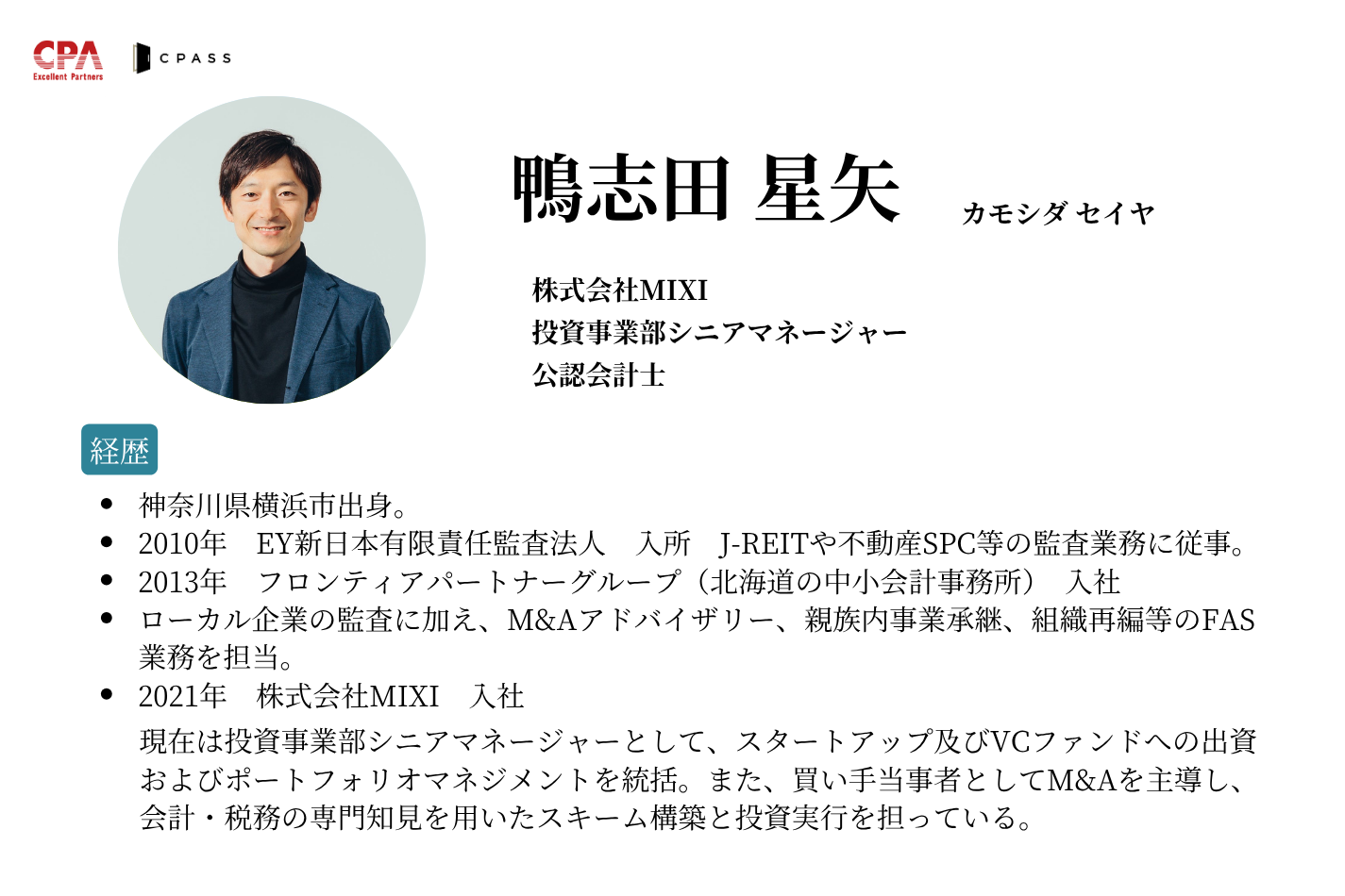 今回の会計士交流会では、富士フイルム株式会社の経理部と株式会社MIXIの投資事業部の第一線で活躍されているお二人にご登壇いただき、大手企業で働くリアルをお届けするトークセッションを行います!