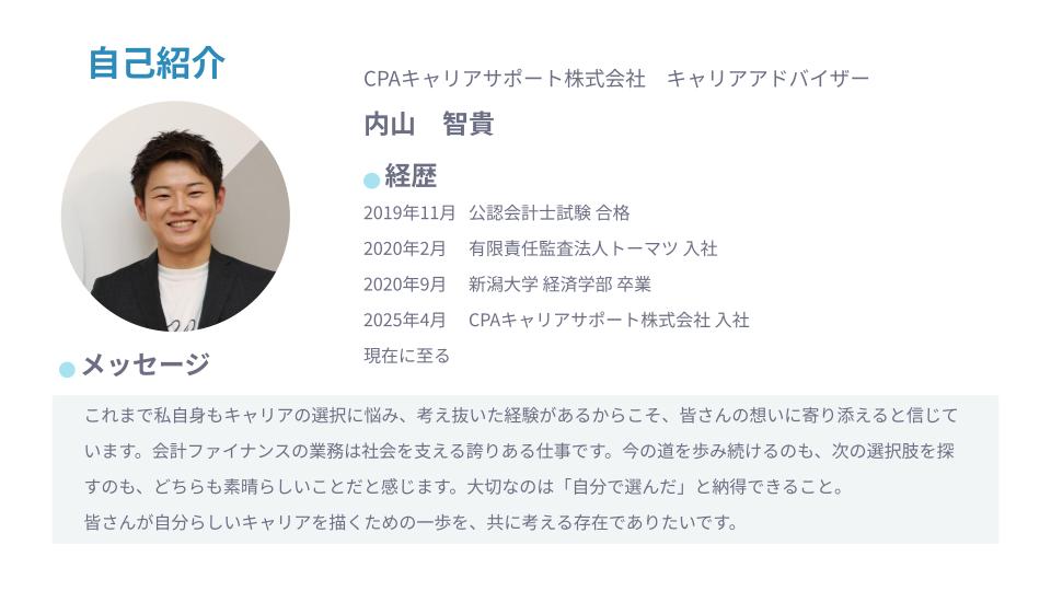 「英語を武器に」そして「U.S.CPA」を最大限に活用し、どうやって未経験からBig4への切符を掴んだのか。異色の経歴を面接でどうアピールしたのか、そして入社半年で感じる「資格と実務のリアルな相関性」までを赤裸々に語っていただきます。